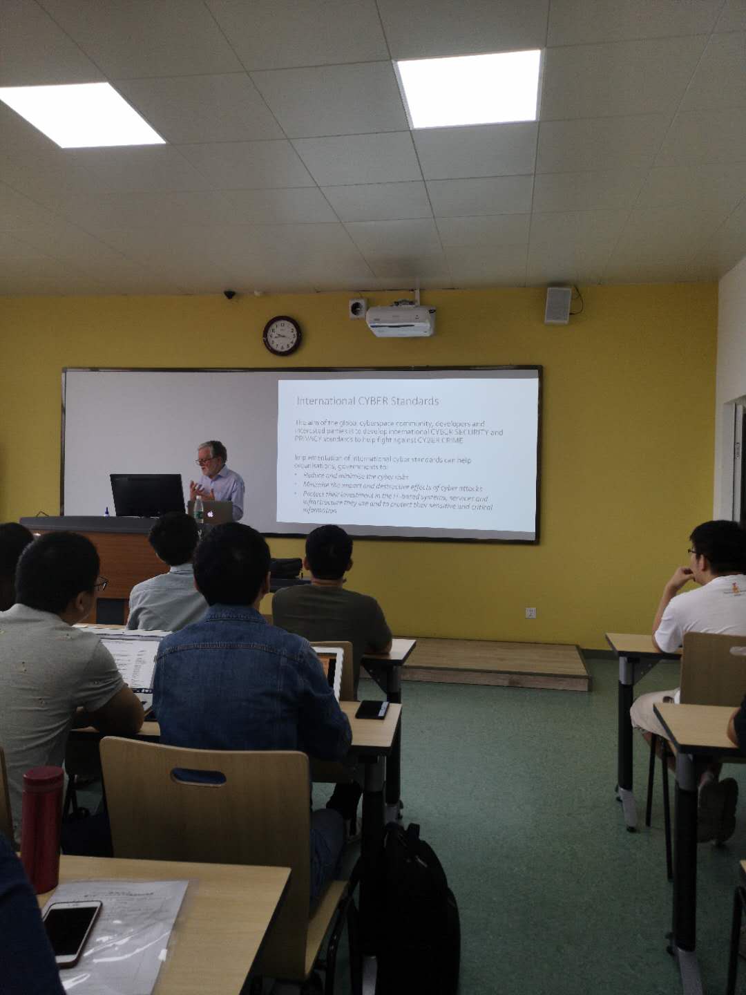 Humphreys教授用他在信息安全和国际标准化领域的长久经验和深刻认识,为我院师生带来了一场内容丰富的学术报告,不仅拓宽了同学们的国际视野,也加深了大家对网络空间安全的认识。报告在热烈的掌声中结束。