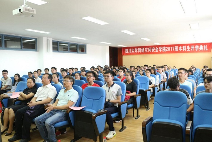 2017年9月11日下午14点30分,四川大学网络空间安全学院2017级新生开学典礼顺利召开。本次开学典礼由网络空间安全学院副院长秦燕老师主持,出席的嘉宾有四川大学副校长、网络空间安全学院院长许唯临教授、网络空间安全学院常务副院长陈兴蜀教授、院长助理杨频教授以及2017级新生辅导员黎红友老师。