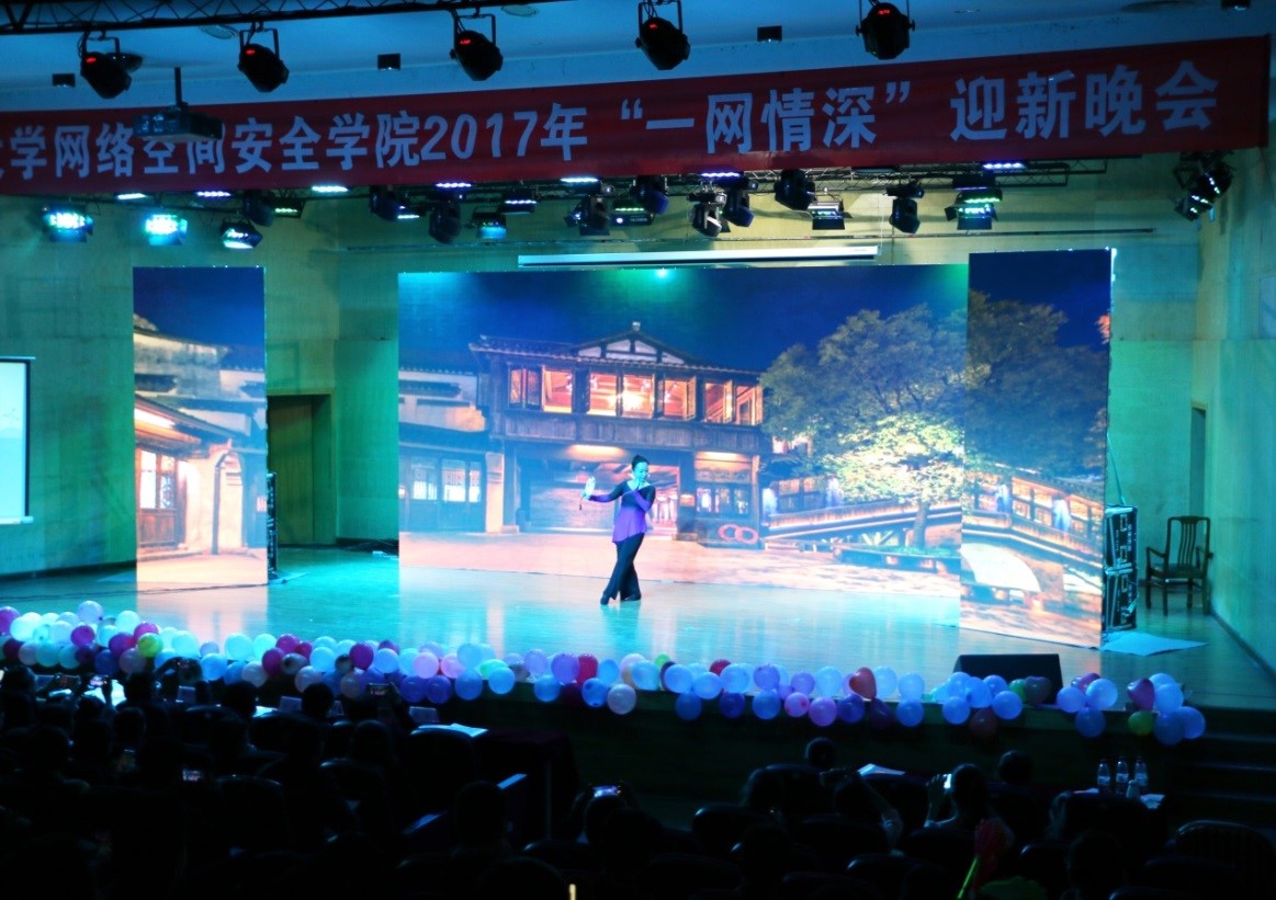 又是一年开学时,又是一年逐梦起。2017年12月10日19:00,四川大学网络空间安全学院2017年“一网情深”迎新晚会在望江校区文华活动中心二楼音乐厅隆重举行。随着公共管理学院艺术团带来的精彩舞蹈,晚会拉开了序幕。随后,网络空间安全学院常务副院长陈兴蜀教授代表学院向在座的新生致辞,表达了对2017级本科生、硕士生、博士生以及2016级本科生的欢迎,并对晚会的圆满完成送上了美好的祝愿。陈院长致辞结束后,晚会就正式进入了表演环节。