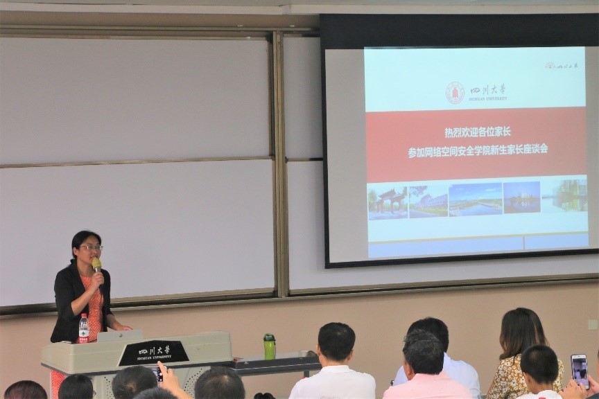 2019年8月30日下午三点,我院于江安校区第一教学楼C座503教室举行了网络空间安全学院2019级新生家长座谈会。网络空间安全学院副院长、直属党支部书记秦燕老师、副院长杨频老师、2018级辅导员黎红友老师、2019级辅导员隋文馨老师以及部分2019级学生家长参加了本次家长座谈会。