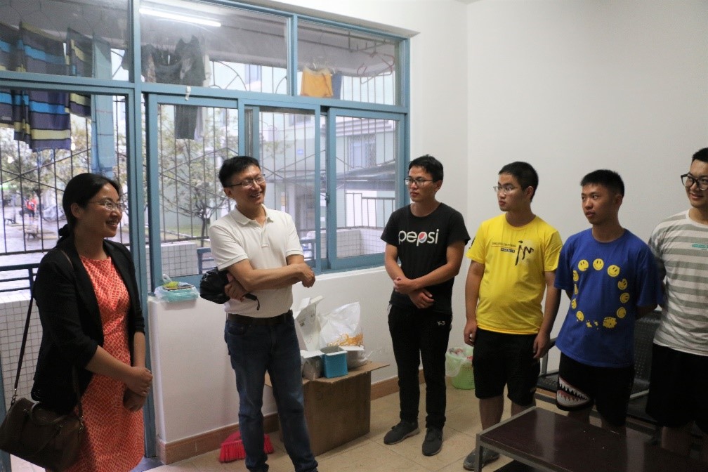 新学期伊始,为了帮助新生尽快适应大学生活,更好地了解新生的情况,2019年8月30日晚,网络空间安全学院副院长、直属党支部书记秦燕、副院长杨频和2019级辅导员隋文馨老师来到新生宿舍看望新同学。