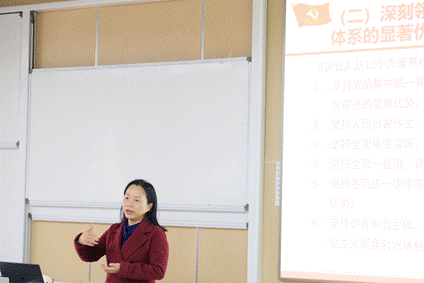 通过本次授课,同学们对党的十九届四中全会精神有了更深刻的理解,也对中国特色社会主义制度有了更明确的认识,获益匪浅。最后,在轻松愉悦的氛围中,本次授课圆满结束。