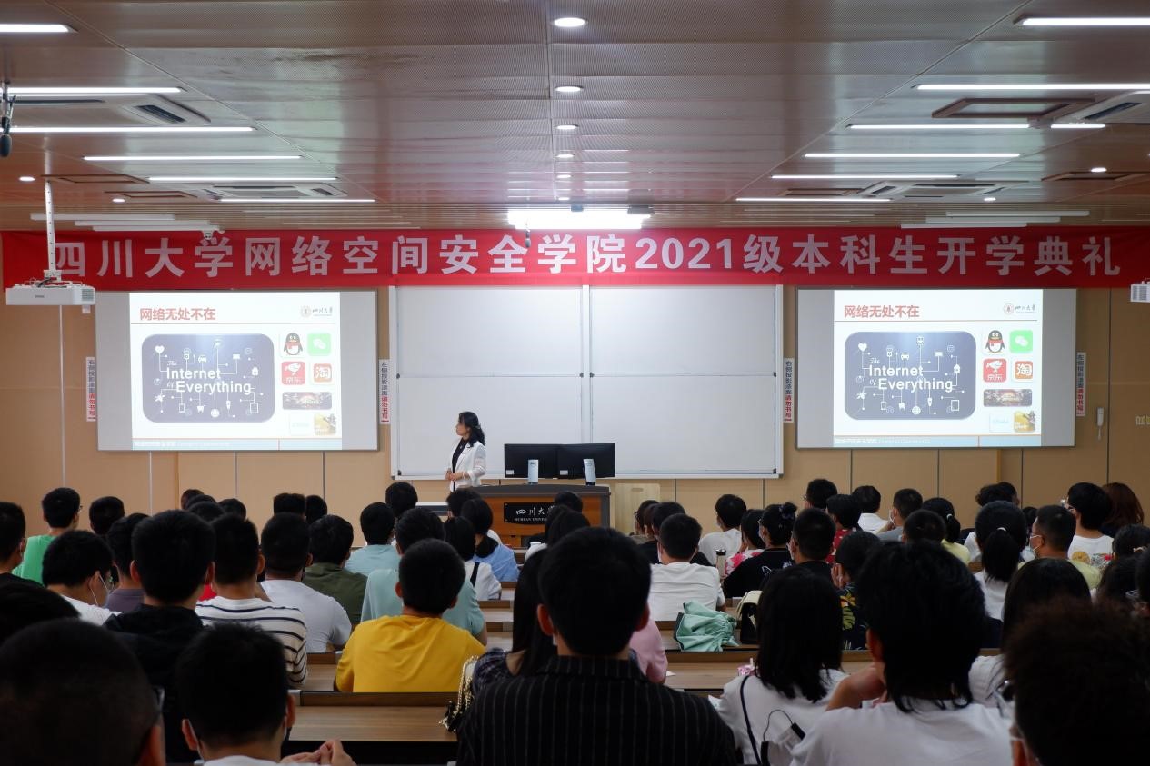 2021年9月7日,四川大学网络空间安全学院2021级本科生开学典礼正式召开。学院常务副院长陈兴蜀、党总支书记秦燕、副院长杨频、青年教师何沛松、学生科科长黎红友、辅导员冯玮、张梦出席了本次新生开学典礼。典礼由学院党总支书记秦燕主持。