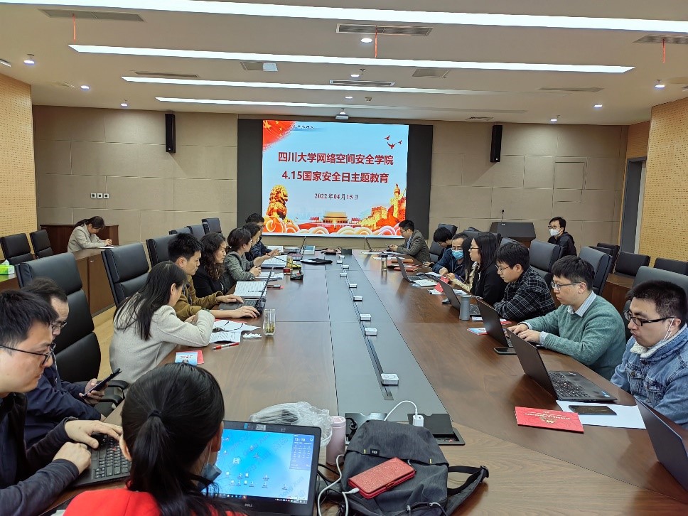 为深入践行总体国家安全观,进一步增强国家安全意识,按照四川省《关于开展2022年“4.15”全民国家安全宣传教育日暨“国家安全宣传教育月”活动的通知》的要求,以及学校的相关部署,4月15日下午,网络空间安全学院组织全院教职工和部分学生在821会议室开展“4.15国家安全教育日”主题教育活动,活动由党总支书记秦燕主持。