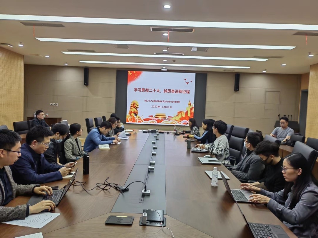 11月4日,网络空间安全学院组织全院教职工在学院821会议室召开“学习贯彻二十大,踔厉奋进新征程”专题学习会,会议由学院党总支书记秦燕主持。