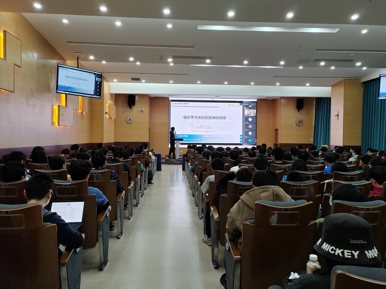 2022年10月27日上午,来自北京航空航天大学网络空间安全学院的彭浩副教授以线上会议的形式为我院同学进行了关于“强化学习优化的图神经网络”的精彩前沿学术讲座。在江安校区多学科交叉研究创新大楼A103报告厅,网络空间安全学院党总支副书记、副院长张意教授出席并主持了本次活动,网络空间安全学院2020-2022级硕士研究生和博士研究生参与了本次学术交流。