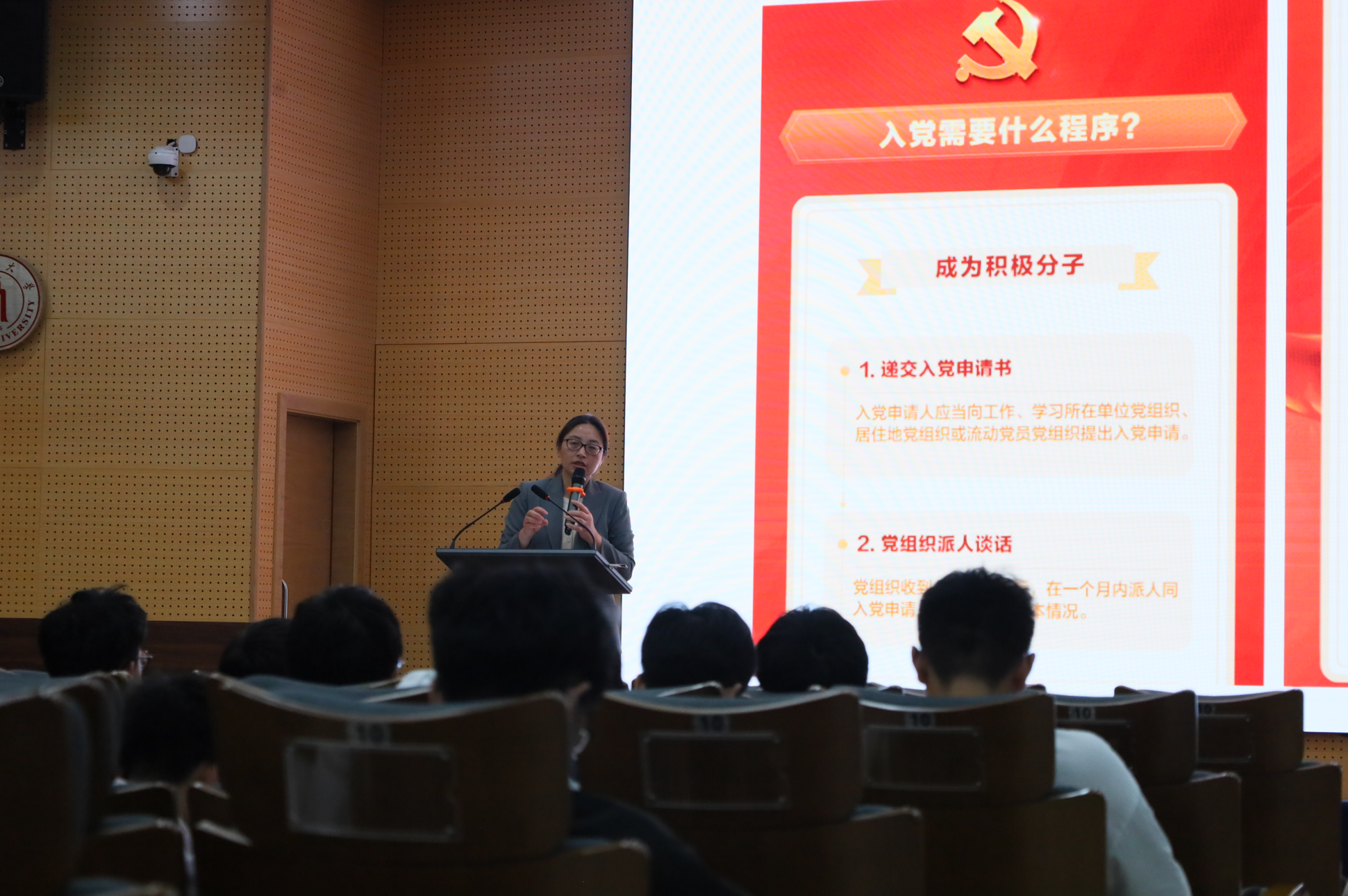 2022年10月13日,在多学科交叉大楼一楼报告厅,网络空间安全学院党总支书记为2022级同学讲授党课。辅导员张梦老师主持,2022级全体同学参加。