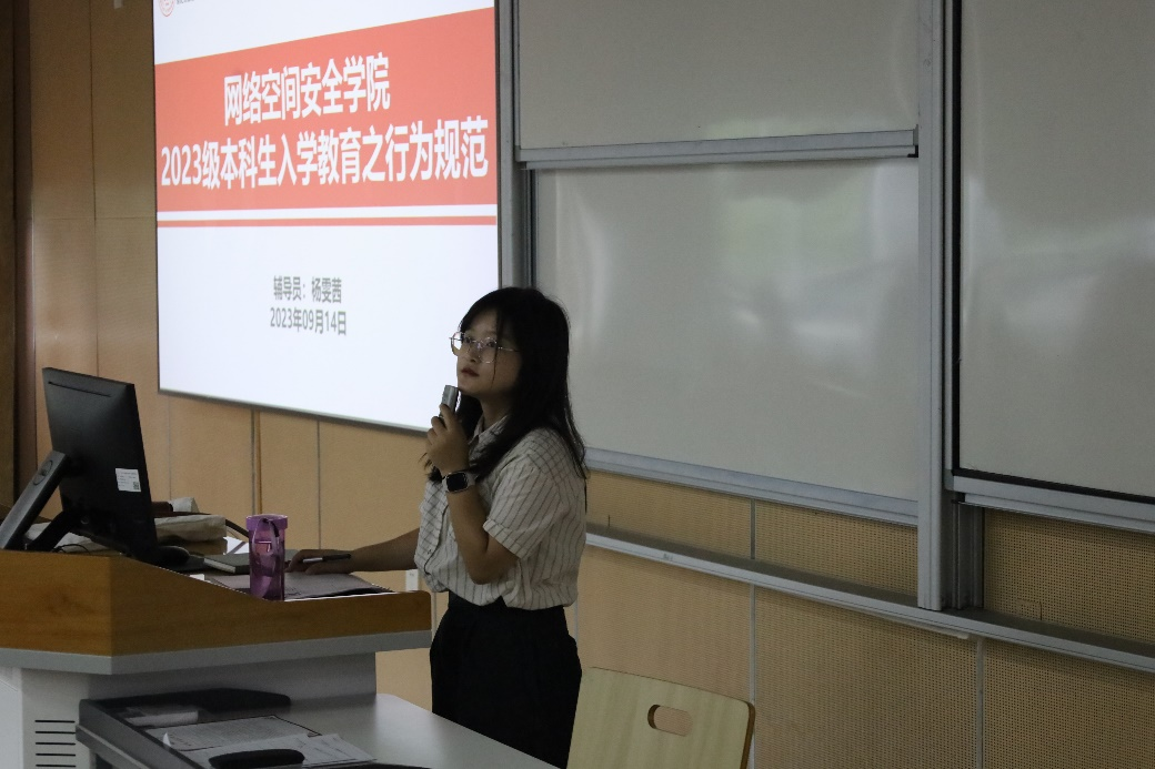 辅导员杨雯茜老师以《大学生行为规范》为主题,为入学教育画上了圆满的句号。