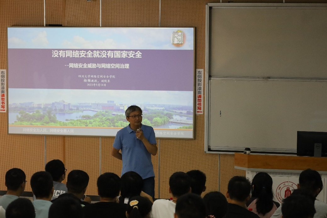 学院副院长杨频教授以《没有网络安全就没有国家安全》为题进行授课。