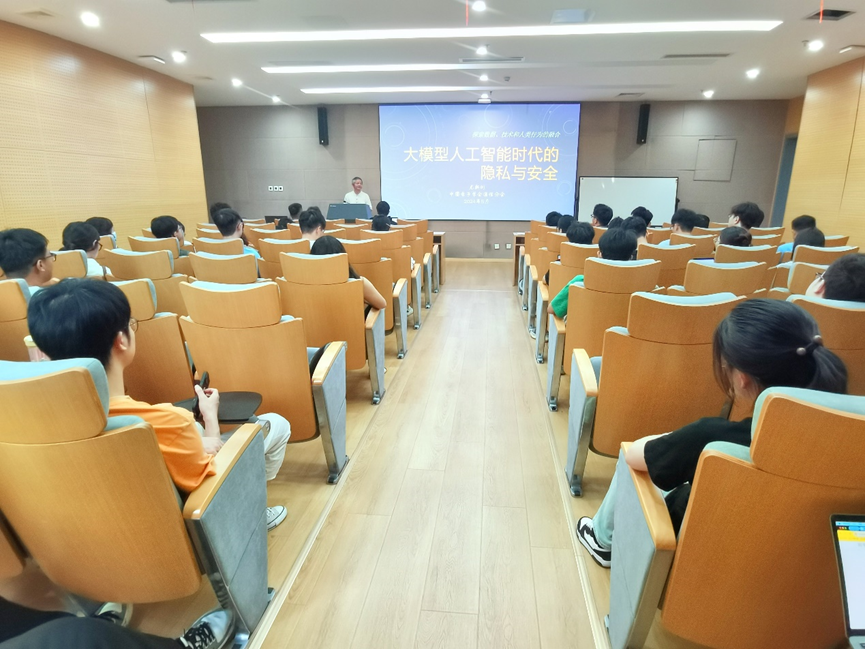 2024年5月23日星期四上午10点,应我院王宏霞教授邀请,中国电子学会通信分会尤新刚教授在四川大学江安校区多学科交叉创新研究大楼919学术报告厅作了题为“大模型人工智能时代的隐私与安全”的学术讲座。本场讲座由王宏霞教授主持。
