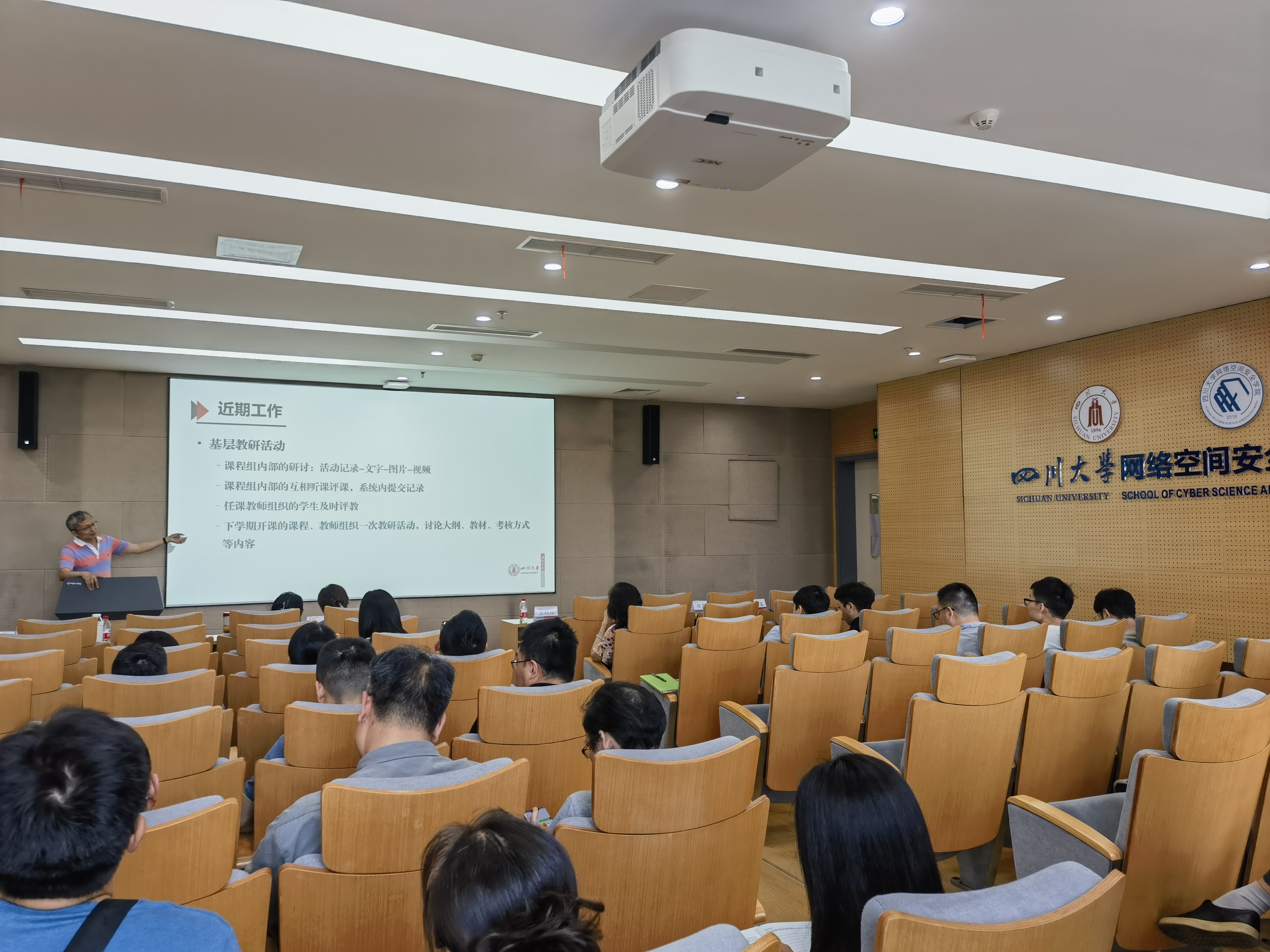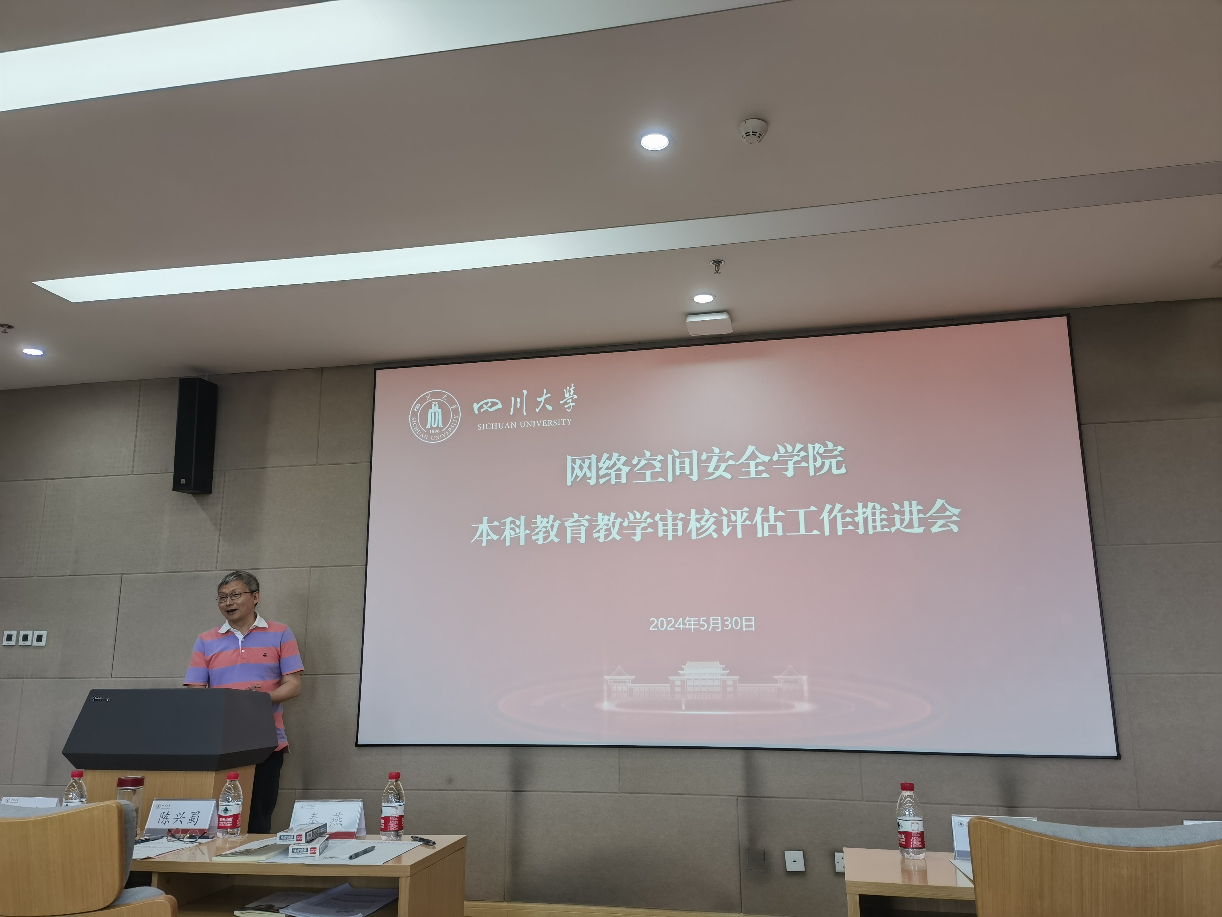 为进一步落实立德树人根本任务,巩固人才培养中心地位,提升人才培养质量,全力迎接2025年教育部对学校开展的本科教育教学审核评估,5月30日下午,学院在江安校区多学科交叉研究创新大楼919报告厅召开了网络空间安全学院本科教育教学审核评估工作推进会。院党总支书记秦燕,院长陈兴蜀,副院长杨频,院党总支副书记、副院长张意,学院全体教学老师及管理人员参加了推进会。会议由院党总支书记秦燕主持。