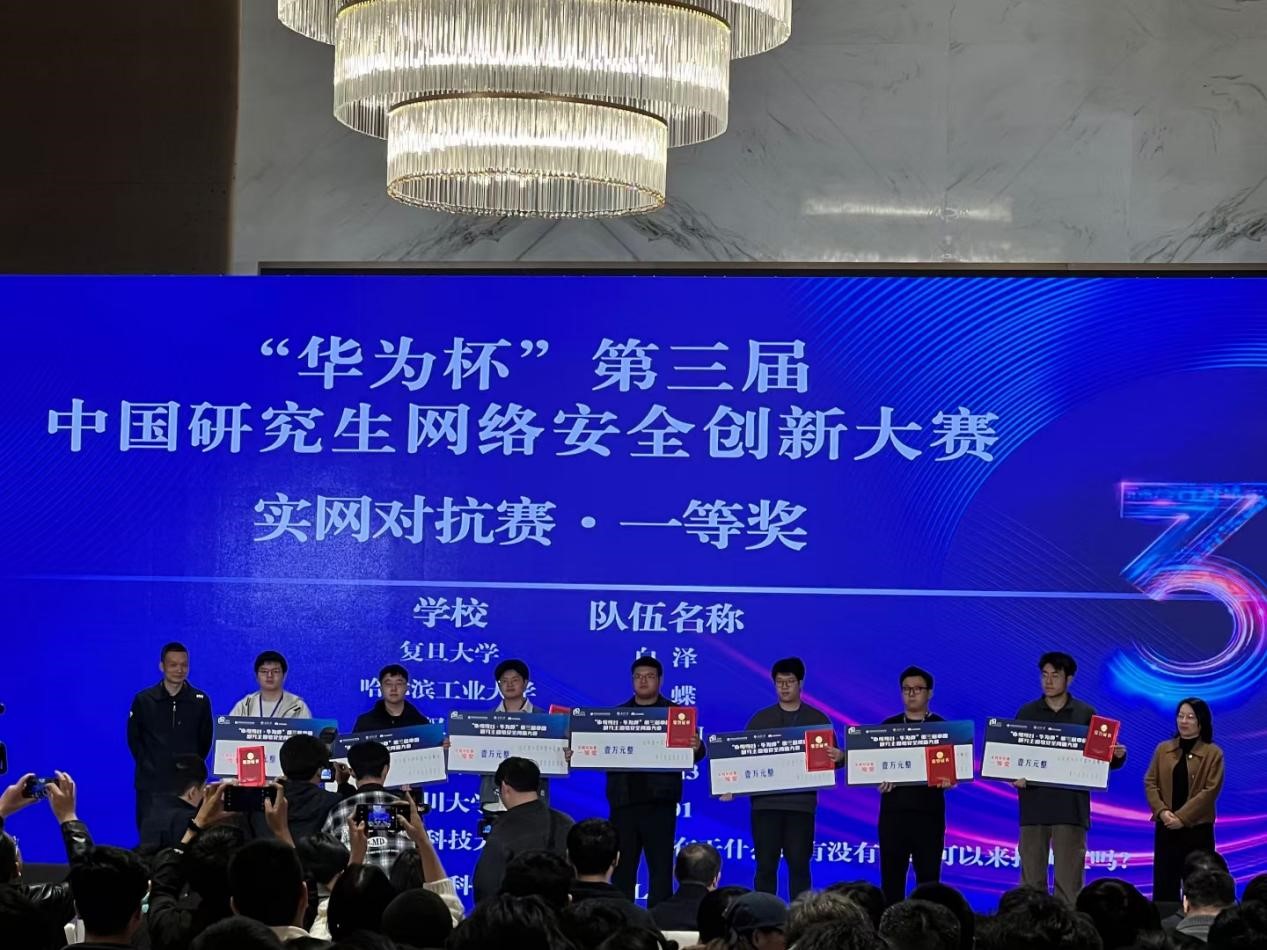 11月16日至17日,“中国网谷·华为杯”第三届中国研究生网络安全创新大赛决赛在武汉市国家网络安全人才与创新基地举行,经过激烈角逐,四川大学0x401战队(团队成员:蒲奥、冯霞、武楷洋、潘炜林,指导教师:黄诚)荣获实网对抗赛一等奖(该奖项全国仅7项),黄诚老师获得优秀指导老师称号,四川大学获优秀组织奖。该成绩均创我校在本赛事中的历史最好成绩。