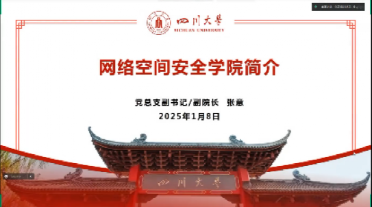 为深入贯彻新时代党的建设总要求,探索联建共建工作新模式,2025年1月9日晚,四川大学网络空间安全学院和南昌航空大学软件学院联合举办了“红色传承,学术共融”跨校党建线上联学活动。此次活动旨在交流两院党建工作特色与红色传承经验,进一步加强两校之间的党建合作与交流,实现资源共享、优势互补。