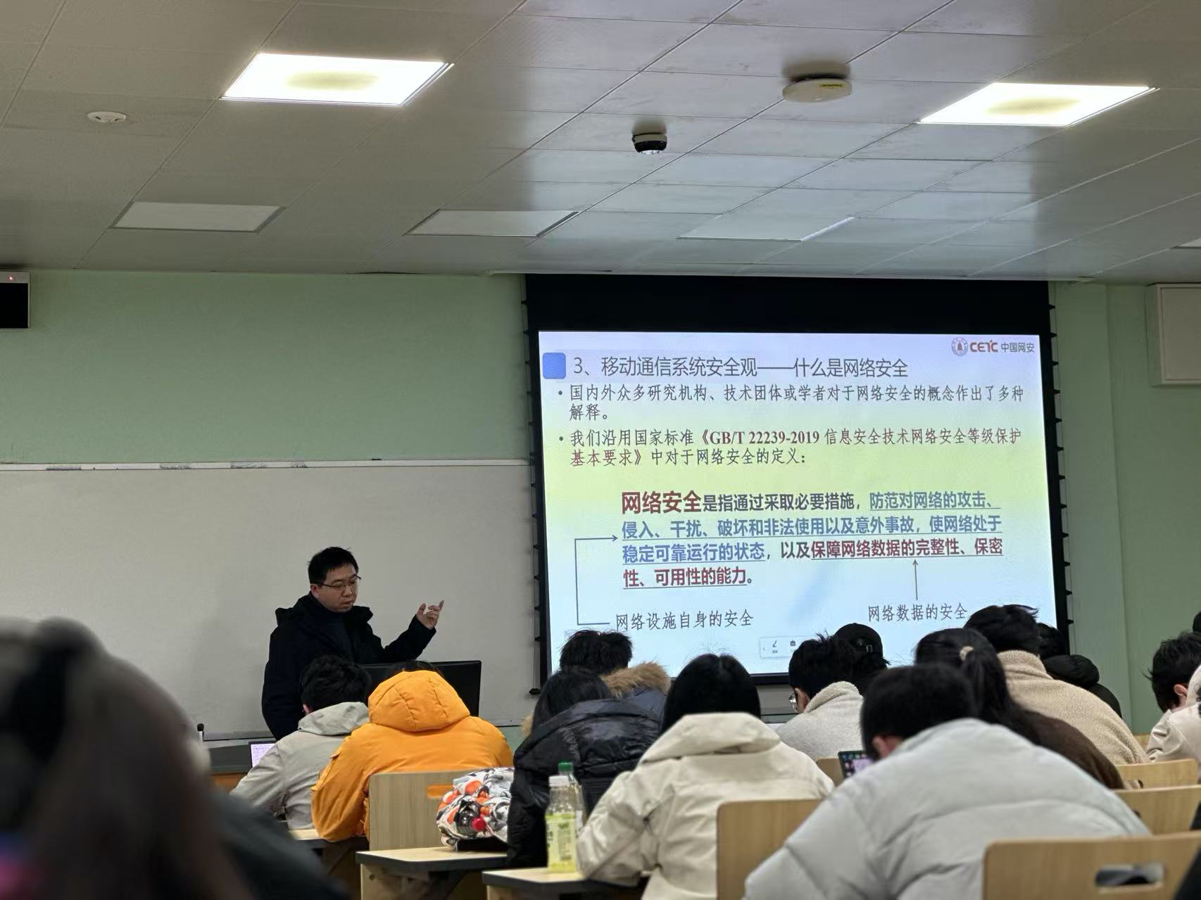 2025年3月18日星期二上午,中国网安/中国电科三十所专家王俊老师为我院电子信息专业学位硕博士生开展了题为“蜂窝移动通信&安全发展与演进”的专题讲座。