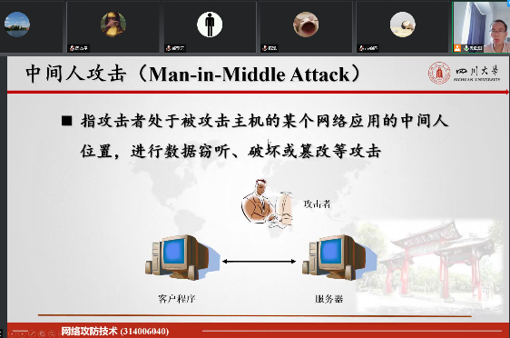 9月5日,学校正式开课的第一天,学院共有9门次课程顺利开课,分别是4门次《网络空间安全技术》、3门次《网络攻防技术》、《网络安全数学基础》、《软件定义网络与高级网络控制编程》。任课教师充分发挥网络教学优势,依托学习通、腾讯会议、慕课等线上平台,开展直播授课,全力保障课程教学质量与进度。老师们准备充分、精神饱满,为呈现更好教学效果,精心制作了教学课件。线上课堂中,学生们热情满满,积极参与课堂讨论,教学效果良好。