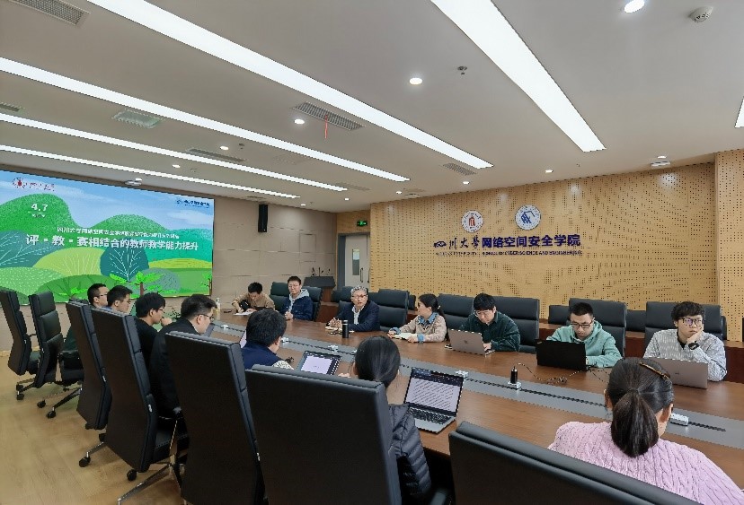 4月7日,我院在江安校区多学科交叉研究创新大楼821会议室顺利开展网络空间安全学院教师教学发展活动——评▪教▪赛相结合的教师教学能力提升,学院邀请到了校督导委专家、卓越教学奖获得者雷军教授、校教师教学竞赛奖获得者何沛松副教授、学科竞赛优秀指导教师黄诚副教授三位优秀的老师作为主讲嘉宾,与学院的青年教师们共同分享宝贵的教学经验。活动由学院副院长杨频主持,学院的20多位老师到场参加了此次活动。