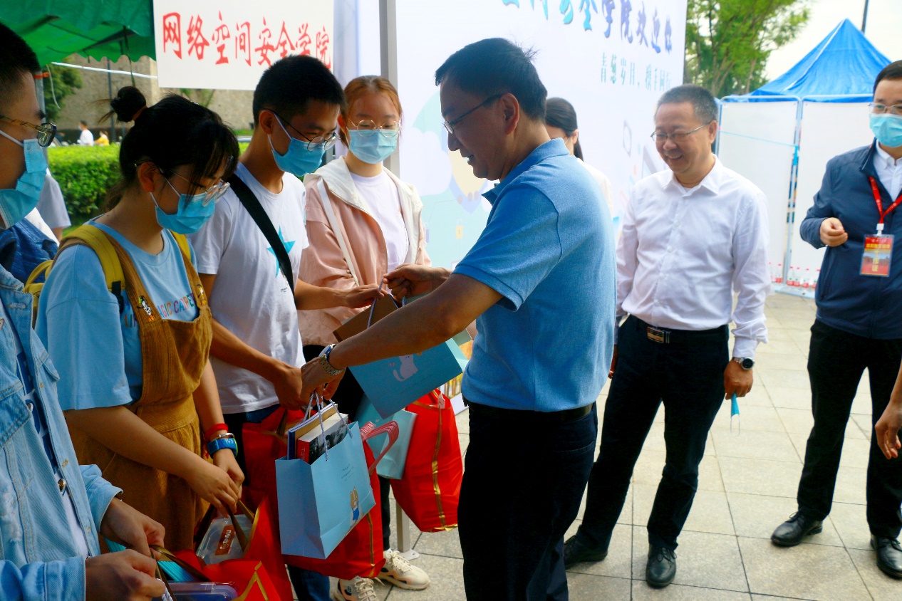 在新生现场,李言荣校长与我院少年生朱奕杰,粟科钞、刘星宇等亲切交谈,欢迎他们来到川大这个大家庭并给同学们赠送了开学礼物,鼓励他们踏实求学,追求卓越,实现青春梦想,为祖国网络空间安全未来发展贡献力量。