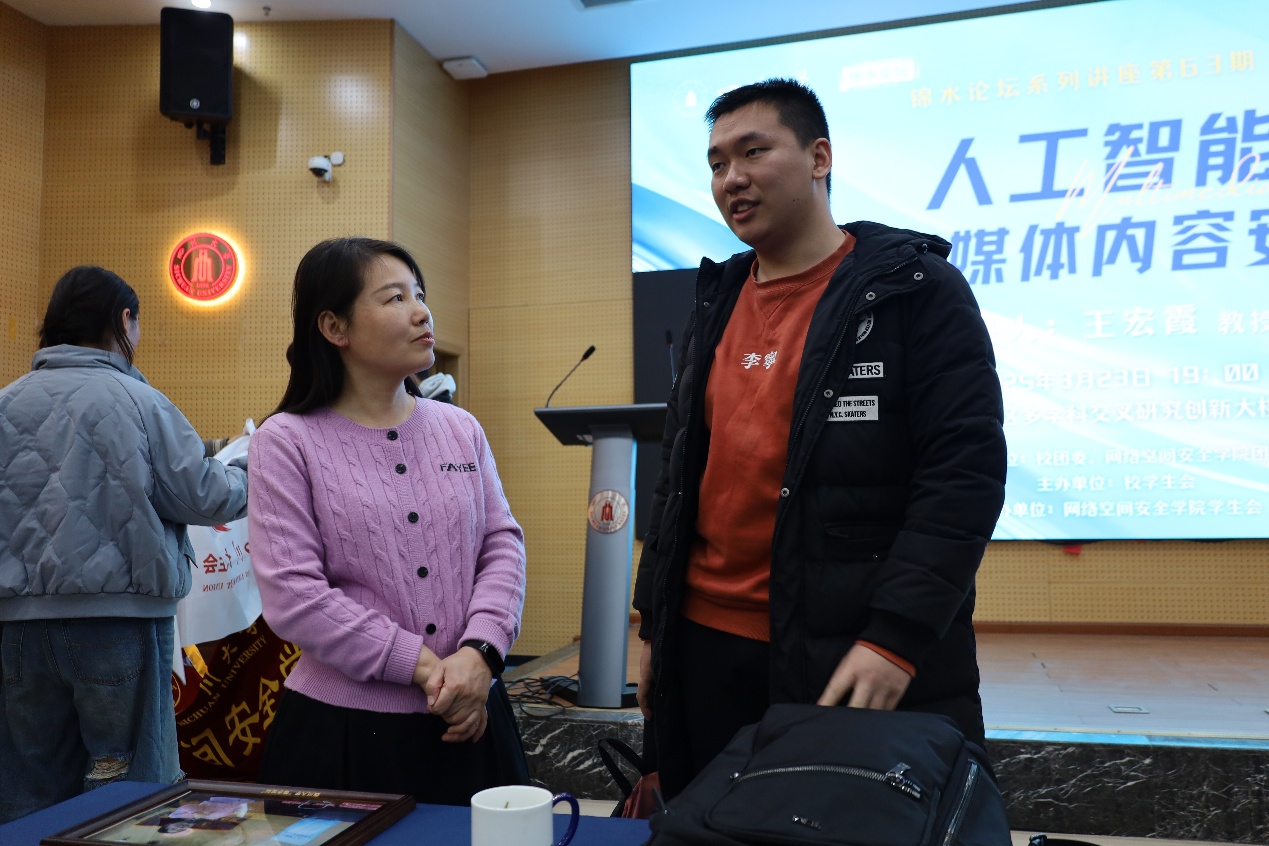 在王宏霞教授的引领下,同学们仿佛置身科技前沿阵地,亲眼见证人工智能与多媒体内容安全领域的激烈交锋,感受科研工作者们在技术浪潮中披荆斩棘的勇气与智慧。这场讲座不仅让同学们收获满满知识,更在他们心中种下创新探索的种子。
